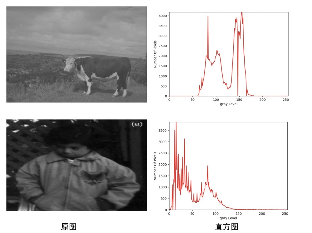 通过直方图我们可以看到各个灰度级的像素个数,即像素的分布情况。如果图像的大部分的像素都集中在直方图的某个范围,就表示图像中的大部分像素的灰度值差别很小,无法很好地进行分辨图像中的物体。