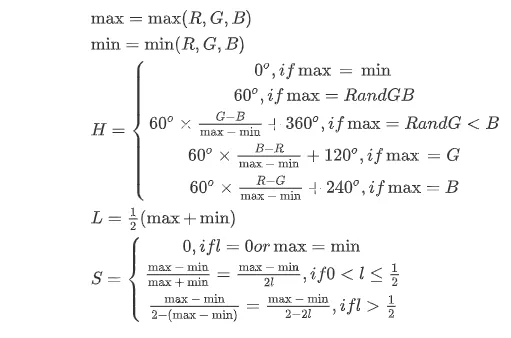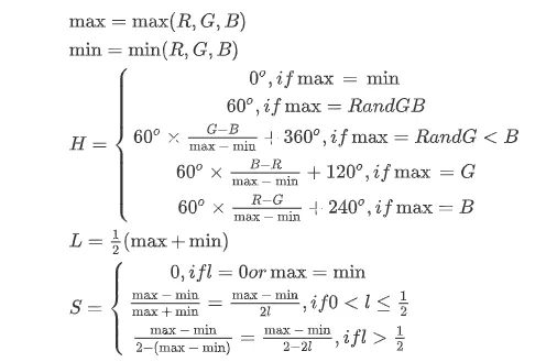 HLS 中的 L 分量为亮度,亮度为100,表示白色,亮度为0,表示黑色。其中,S与L与HSV中保持一致。