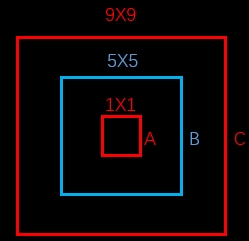上图中,蓝色为bounding box,红色框为真实标注,如果W和h没有平方根的话,那么bounding box跟两个真实标注的位置loss是相同的。但是从面积看来B框是A框的25倍,C框是B框的81/25倍。B框跟A框的大小偏差更大,所以不应该有相同的loss。