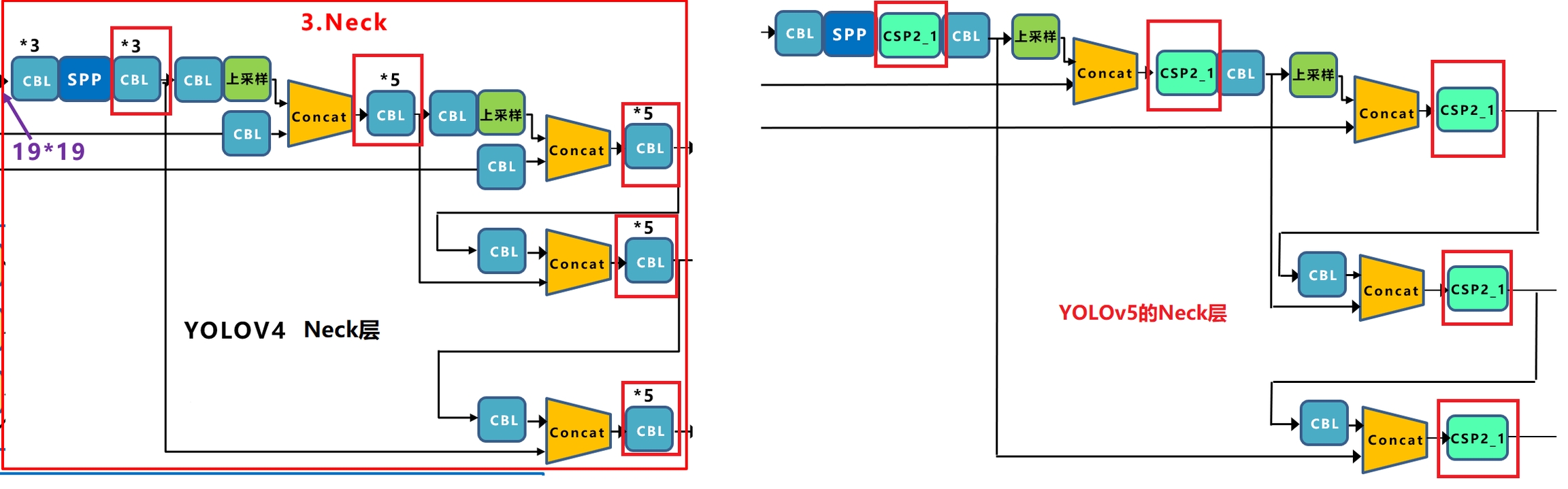 Yolov4的Neck结构中,采用的都是普通的卷积操作。而Yolov5的Neck结构中,采用借鉴CSPnet设计的CSP2_X结构,加强网络特征融合的能力。