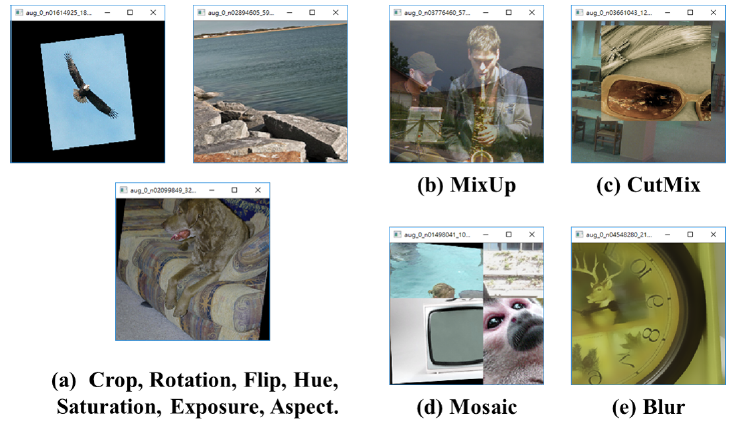 在YOLOv4中,通过引入CutMix和Mosaic数据增强、类标签平滑和Mish激活等功能,分类精度得到了提高。因此,本文用于分类训练的BoF骨干(免费包)包括以下内容:CutMix和Mosaic数据增强和类标签平滑。此外,本文使用Mish激活作为补充选项,