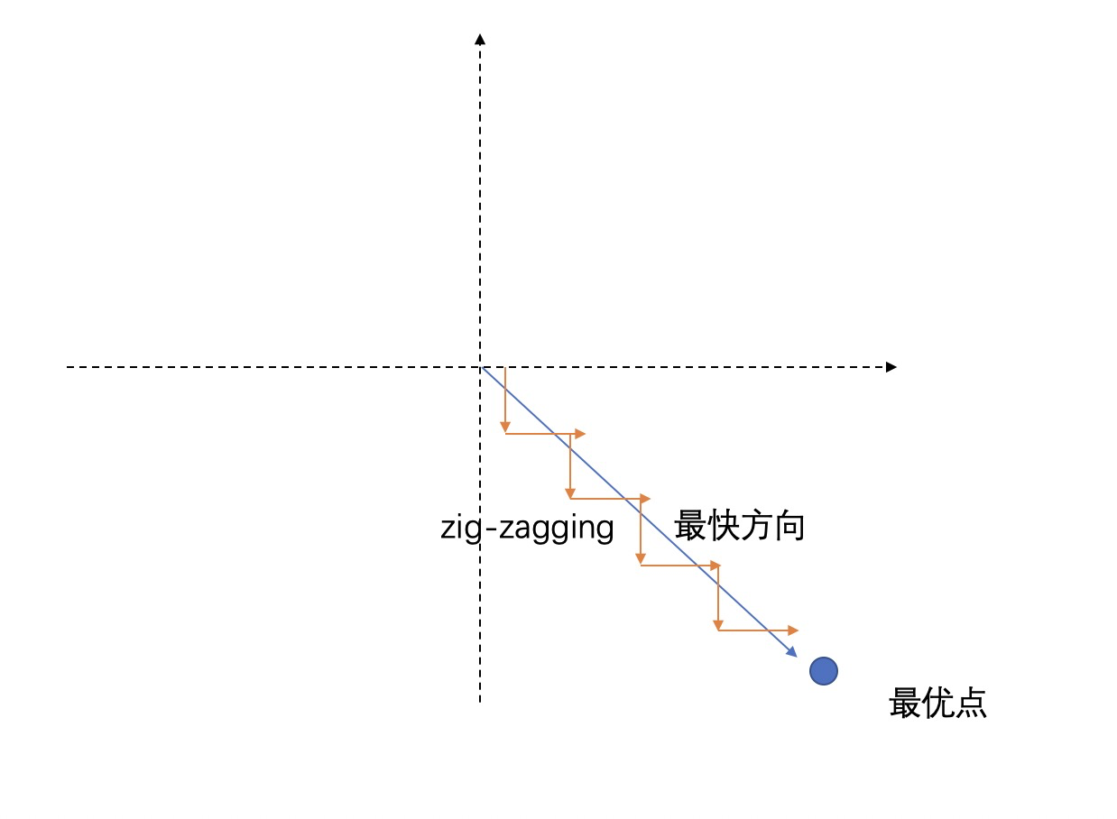 部分激活函数是非零均值的,如$ReLU$, $Sigmoid$等激活函数,他会造成网络收敛很慢。我们可以简单看下表示式:$f=(w_{i} x_{i}+b)$,其中$x_{i}$为$sigmoid$函数的输出。那么,在计算损失函数后,需要进行反向传播更新该权重$w_{i}$。这时候,对$w_{i}$进行求导,是直接与$x_{i}$相关的,而因为$x_{i}$是大于$0$的值,所以这时候的梯度方向就会完全取决于$\frac{dL}{df}$。这时候若$\frac{dL}{df}$恒正或者恒为负,那么就会出现$zig-zagging$ $dynamics$的问题,使得网络收敛变慢。