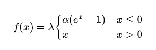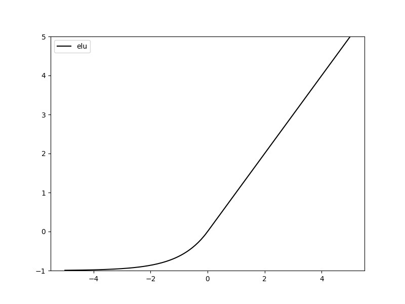 $ELU$同样是针对$ReLU$的负数部分进行的改进,$ELU$激活函数对$x$小于零的情况采用类似指数计算的方式进行输出: