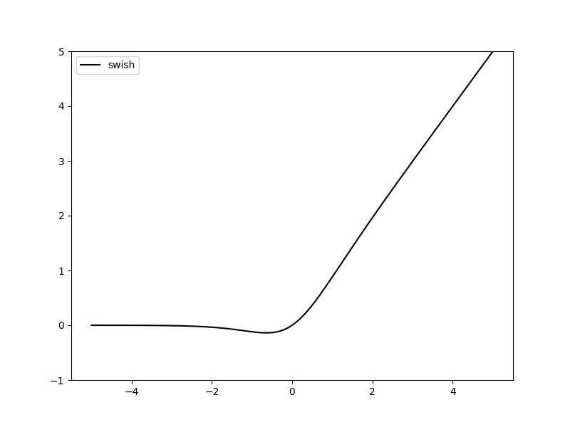 当$\beta=0$时,$Swish$激活函数成为线性函数$f(x)=\frac{x}{2}$。 当$\beta \rightarrow \infty, \sigma(x)=(1+\exp (-x))^{-1}$ 为0或1. Swish变为ReLU: $f(x)=2 \max (0, x)$。 以$Swish$函数可以看做是介于线性函数与$ReLU$函数之间的平滑函数.