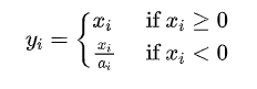 $a_{i}$是一个$(1,+\infty)$区间内的固定参数。与 $ReLU$ 相比 ,$leaky$ $ReLU$ 给所有负值赋予一个非零斜率$a_{i}$。这样保留了一些负轴的值,使得负轴的信息不会全部丢失。