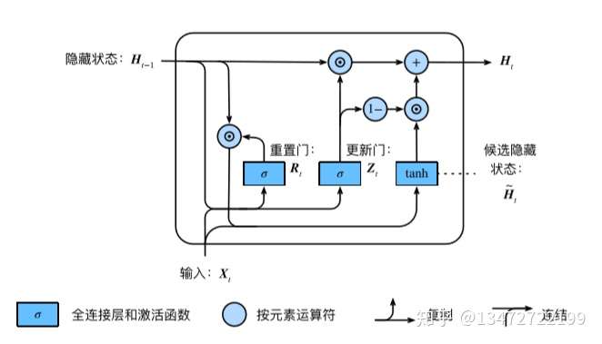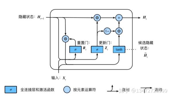 的值分布在[0,1]之间,当前记忆细胞组合了当前输入和前次记忆细胞状态。如果遗忘 ⻔⼀直近似1且输⼊⻔⼀直近似0,过去的记忆细胞将⼀直通过时间保存并传递⾄当前时间步。这 个设计可以应对循环神经⽹络中的梯度衰减问题,并更好地捕捉时间序列中时间步距离较⼤的依 赖关系。