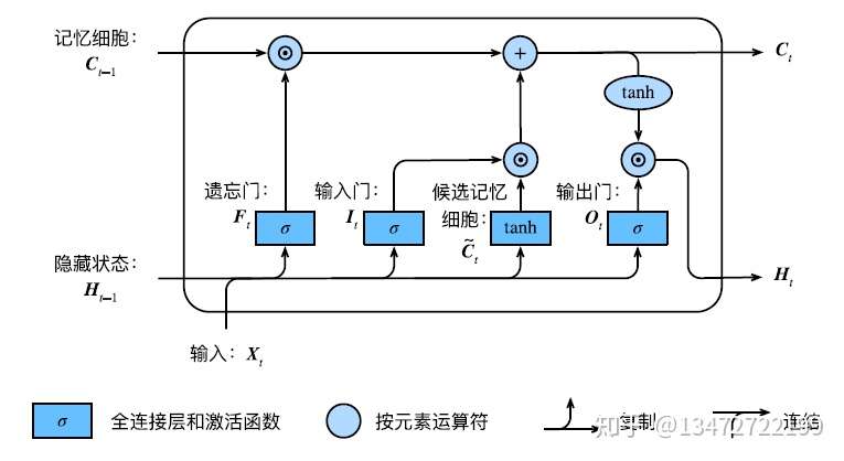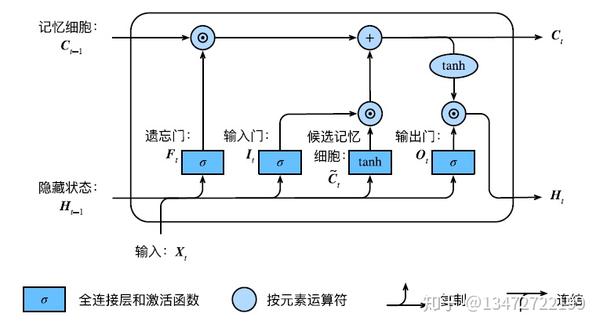 输入,上次隐藏层输出以及上次记忆细胞值。