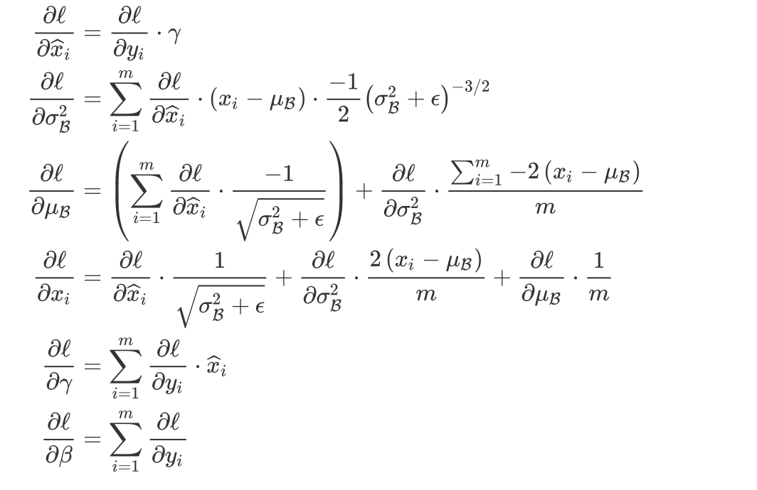 加入缩放和平移变量$\gamma$和$\beta$ ,归一化后的值,$y_{i} \leftarrow \gamma \widehat{x}_{i}+\beta$