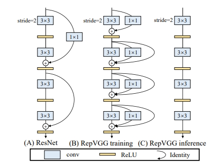 网络训练和网络推理阶段使用不同的网络架构,训练阶段更关注精度,推理阶段更关注速度。