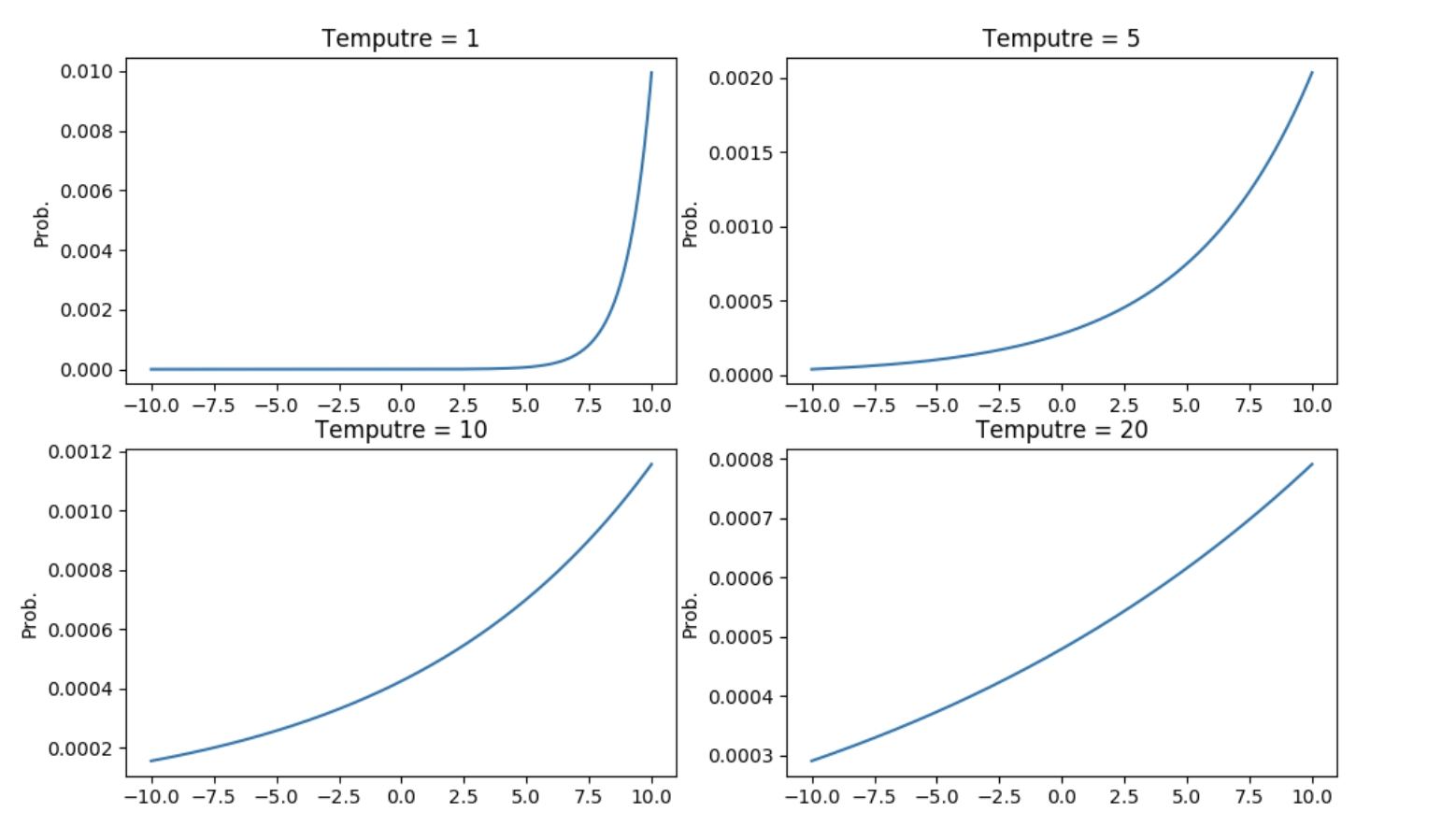$T$参数为了对应蒸馏的概念,在论文中叫的是$Temperature$。$T$越高对应的分布概率越平缓,如上图所示。