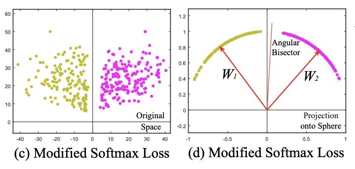 到目前为止,都只是转换学习空间而已,由最开始的优化内积变成了现在的优化角度,但是学习到的特征都是表征信息,远没到达我们的目标:判别特征信息。