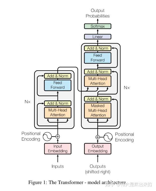 我们观察模型的结构图,Transformer模型包含哪些模块?笔者将其分为以下几个部分: