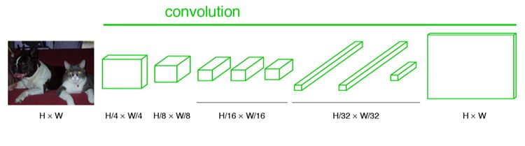 输入图像经过卷积和池化之后,得到的 feature map 宽高相对原图缩小了数倍,所产生图叫做heatmap热图,热图就是我们最重要的高维特诊图,得到高维特征的heatmap之后就是最重要的一步也是最后的一步对原图像进行upsampling,把图像进行放大、放大、放大,到原图像的大小。