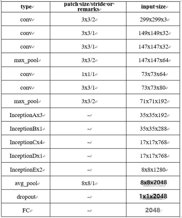 最后我们来看一下在使用了以上的核心思想的$Inception$ $V3$网络整体结构,如下图$9$所示,其中$35$×$35$×$288$、$17$×$17$×$768$和$8$×$8$×$1280$三种输入的$Inception$结构分别对应上文中提到的图$2$、图$4$、图$5$。