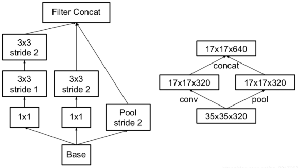 作者采用了一种并行的降维结构,在加宽卷积核组的同时减小特征图大小,既减少计算量又避免了瓶颈结构。如下图$8$所示: