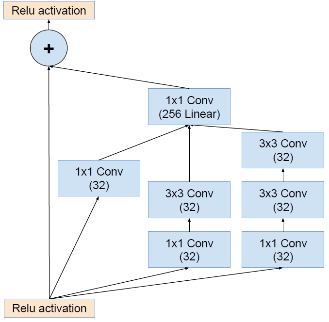 在下面的所有网络结构图中,所有后面不带$V$的卷积,用的都是$same-padding$,也就是输出的特征图大小等于输入的特征图大小;带$V$的使用的是$valid-padding$,表示输出的特征图大小是会逐步减小的。