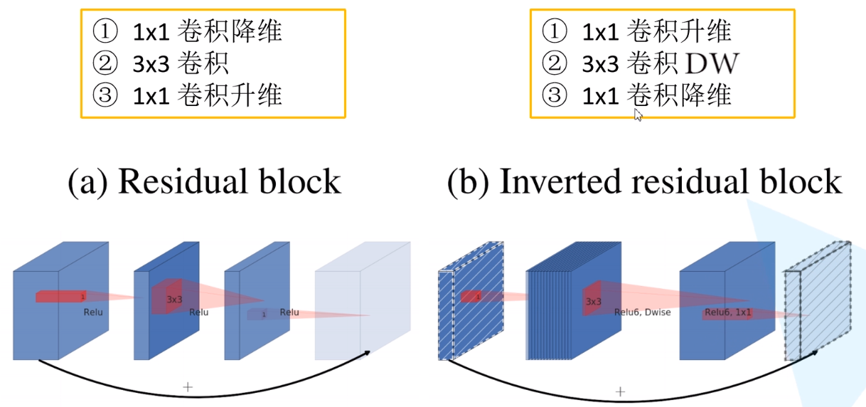 使用了 $Inverted$ $Residuals$(倒残差结构)