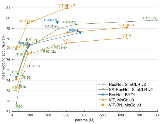 MoCov3的出发点是NLP领域的Unsupervised representation learning使用的架构都是Transformer的,而CV领域的Self-Supervised还在使用CNN架构,是不是可以在Self-Supervised中使用Transformer架构呢?于是MoCov3继续探索Self-Supervised+Transformer的上限在哪里,有金融+计算机内味了。