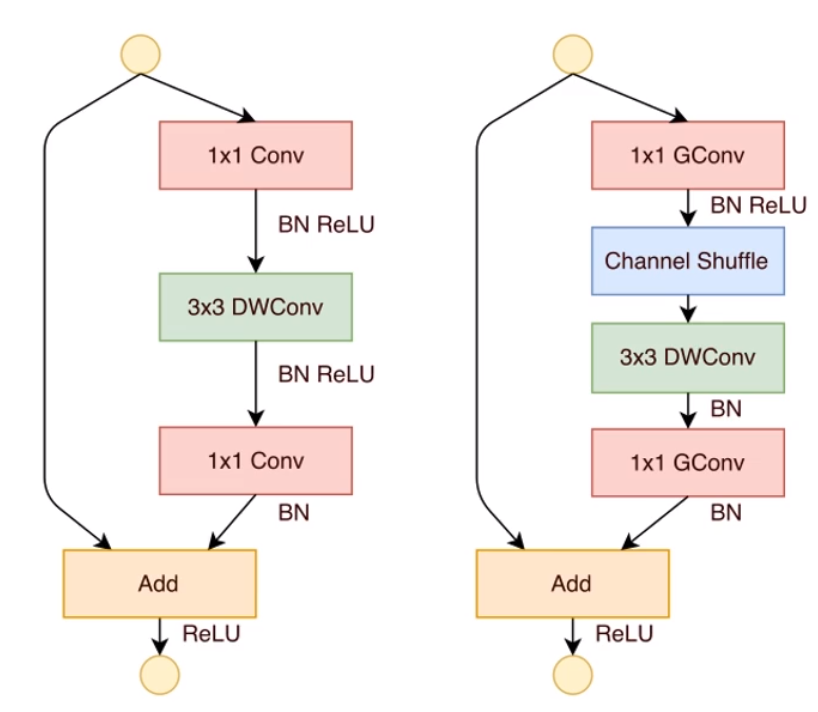 $ShuffleNet$ $V1$ 是 $Face++$ 于 $2017$ 年提出的轻量级深层神经网络。在 $ImageNet$ 竞赛和 $MS$ $COCO$ 竞赛中均表现了比其他移动端先进网络更优越的性能。