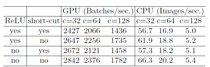 $G4$ 的意思为:$Element$-$wise$ 操作不能被忽略。如图 $2$ 所示,$IO$ 操作例如数据拷贝虽然 $FLOPs$ 非常低,但是带来的时间消耗还是非常明显的,尤其是在 $GPU$ 上。元素操作操作虽然基本上不增加 $FLOPs$,但是所带来的时间消耗占比却不可忽视。于是作者做了一个实验,采用的是 $Resnet50$ 的 bottleneck,除去跨层链接 $shortcut$ 和 $ReLU$ 之后测试其推理速度如下图 $7$ 所示,在 $GPU$ 和 $ARM$ 结构上都获得了接近 $20$% 的提速。