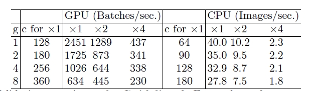 可以看出,在 $B$ 不变时,$g$ 越大,$MAC$ 也越大。如下图 $4$ 所示,作者也做了实验对比,从图可以看出随着 $g$ 越大,在 $GPU$ 和 $CPU$ 的推理速度也越慢。