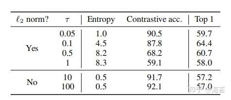表 5. 针对 NT-Xent 损失,使用不同的 范数和温度 τ 选择训练的模型的线性评估。 对比分布超过 4096 个示例。