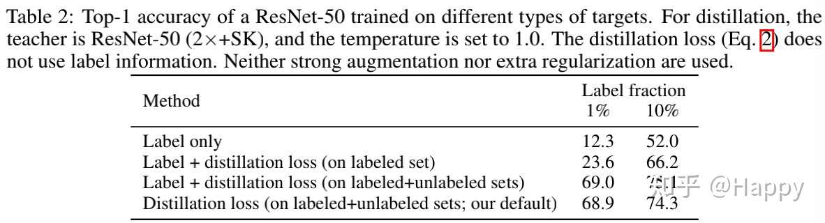 总而言之,所提半监督方法可以总结为三步;(1)采用SimCLRv2方法在无标签数据上对一个Big ResNet模型进行预训练;(2)在有标签数据上通过有监督方式进行微调;(3)在无标签数据上采用蒸馏方式进行进行知识迁移。